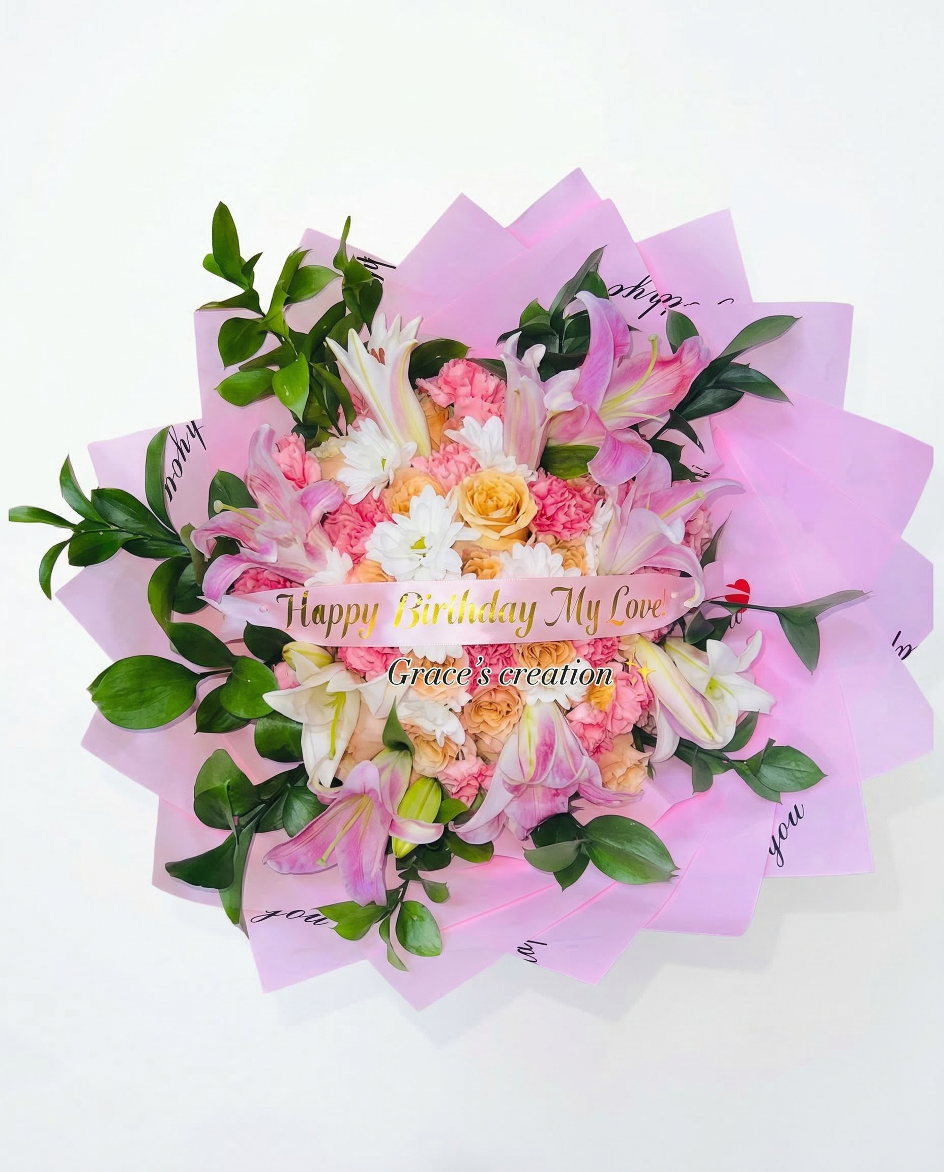 Toque Final de Distinción: Decorado con una cinta rosa de satén con detalles dorados de “Happy Birthday My Love!”, asegurando que cada regalo sea único.