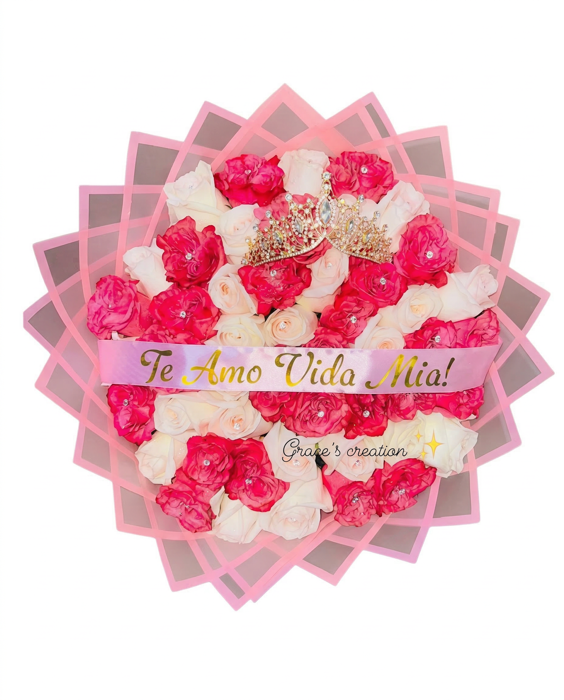 • Accesorios de Gala: Incluye dos mariposas doradas troqueladas con detalles de pedrería, que parecen posarse sobre las flores para añadir un toque de fantasía.