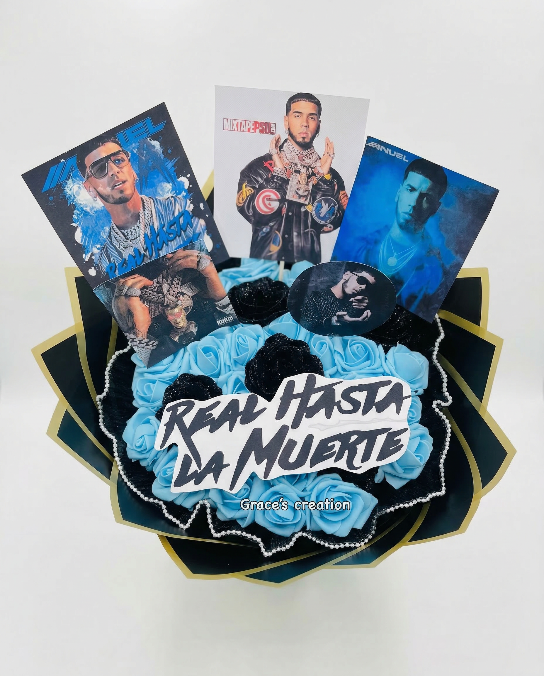 inde homenaje a una verdadera leyenda urbana con nuestro Ramo Leyenda Urbana: Real Hasta La Muerte. Este diseño exclusivo es una obra maestra de estilo urbano y sofisticación, creado para cautivar a los amantes del icónico lema de Anuel AA con un toque de elegancia real.