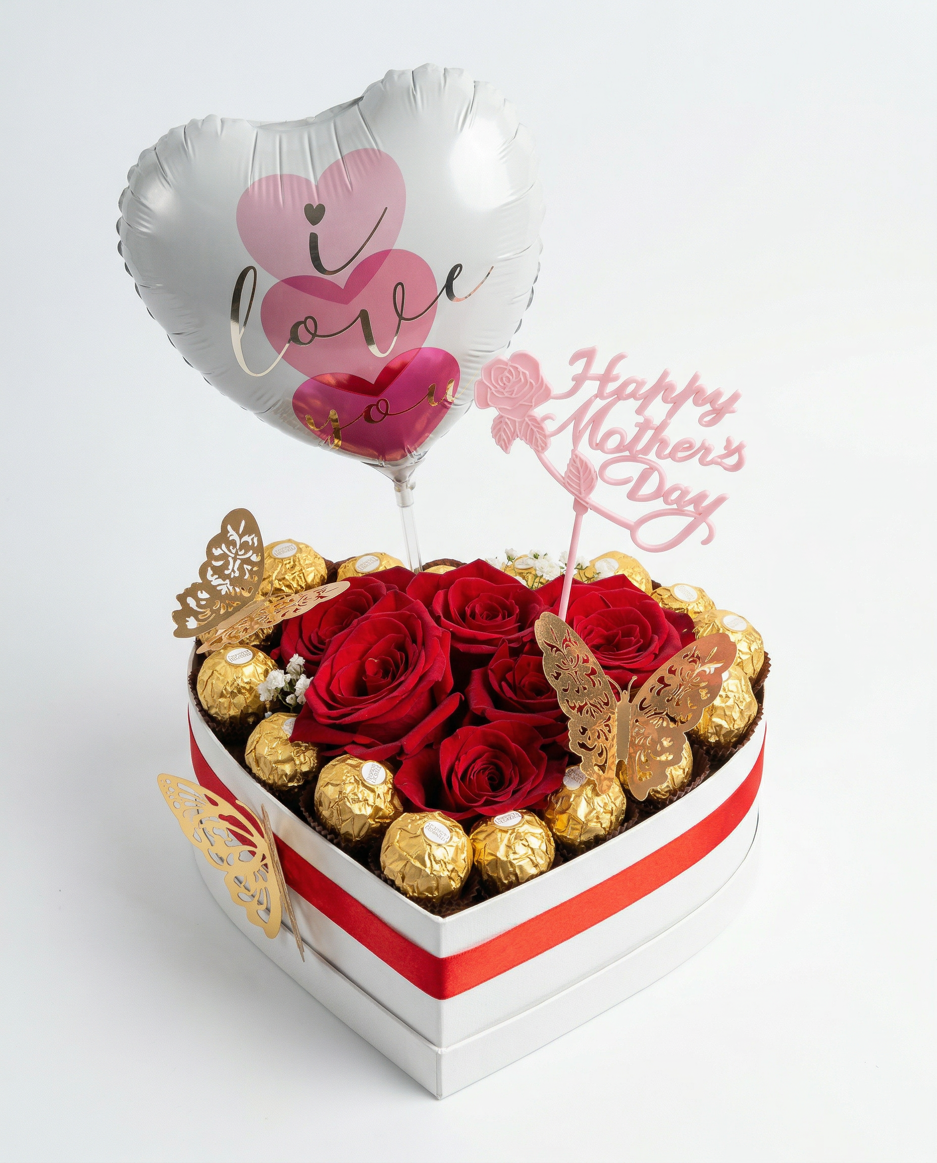 Ideal para: Celebrar a mamá, aniversarios mensuales, o como un gesto de amor espontáneo que combina flores y chocolates de forma armoniosa.