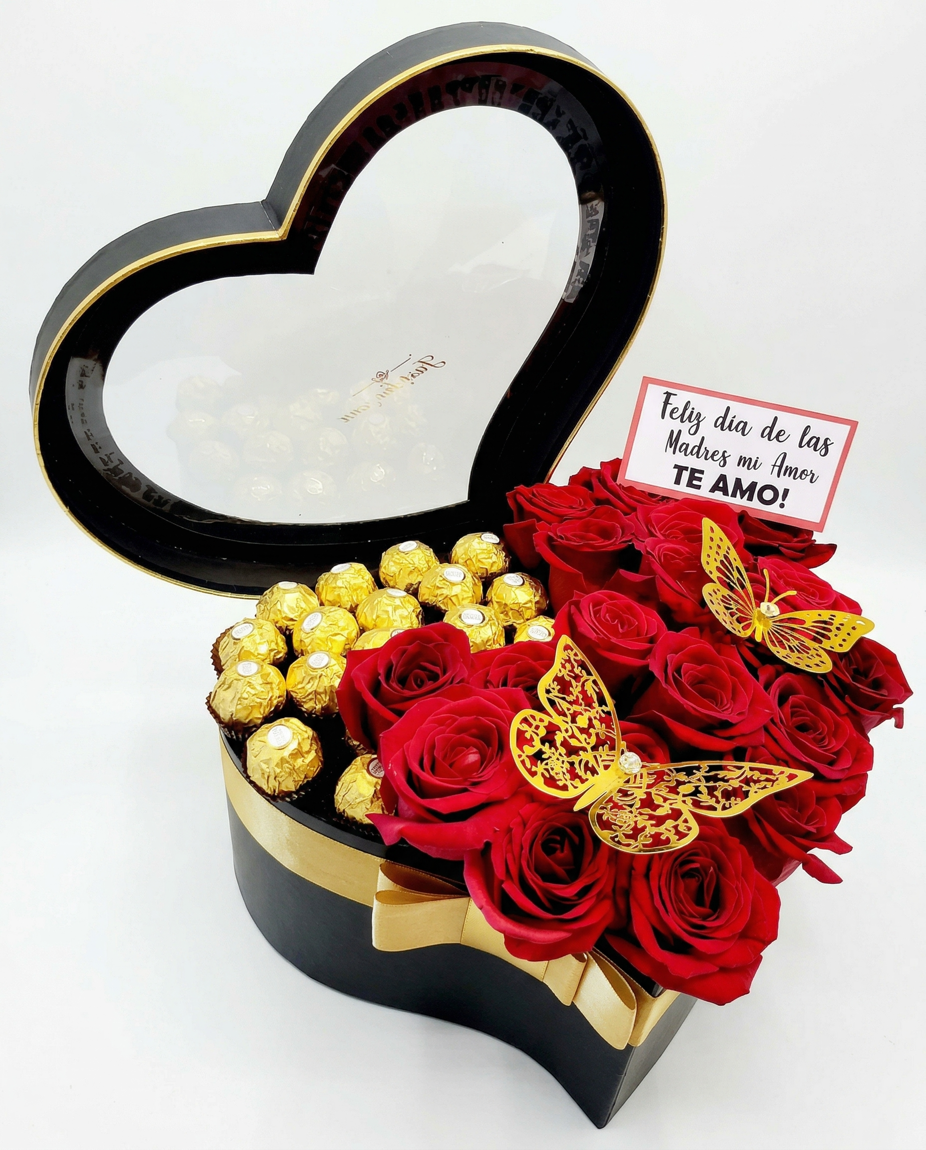 Este cofre ha sido diseñado para quienes buscan un regalo que combine el romanticismo clásico de las flores con el placer de la chocolatería fina. Su estructura sólida y su presentación visual equilibrada lo convierten en una pieza de exhibición que destaca en cualquier espacio.